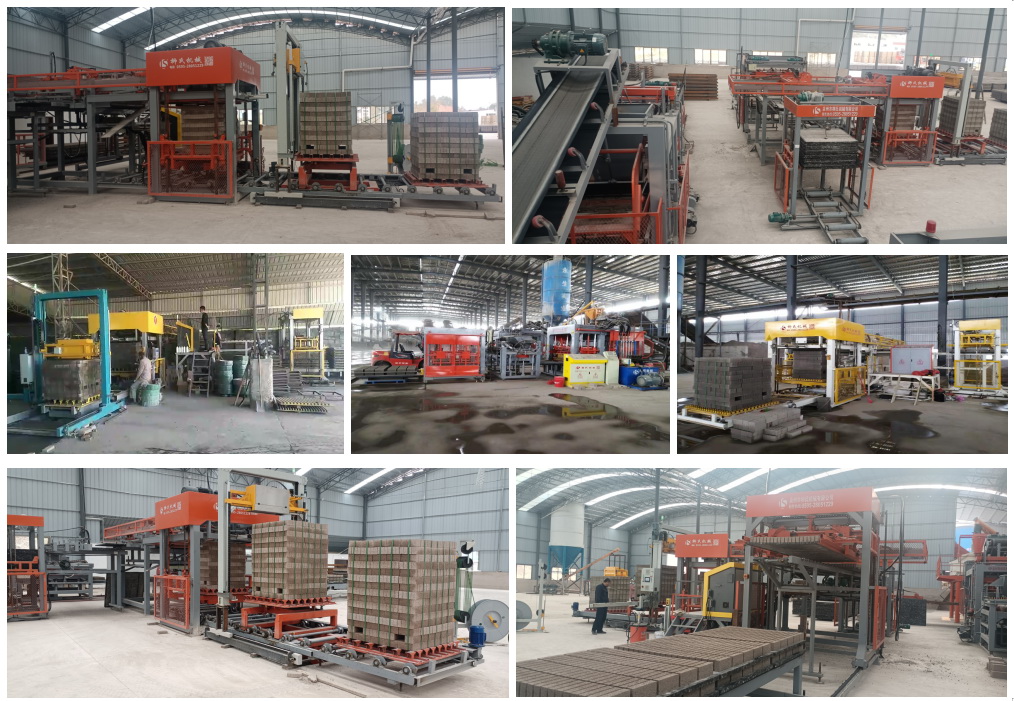 各種機型都能使用(4型機、5型機、6型機、8型機、10型機、12型、15型機等均可使用)常見各種水泥磚型可智能連接自動穿劍打包機或薄膜拉伸纏繞膜包裝機,也可以串聯全自動砌塊成型機生產線之中,實施在線碼垛。碼磚機功能技術先進,自動化程度高,有自動預留叉車孔, 自動收放托架功能、將不同型號磚機生產的不同磚制品進行磚板分離,排磚整理后碼垛成方垛(標磚實心磚一次碼垛可達1.2*1.2米)穿箭自動打包,再配合叉車或抱磚機輸送到堆放場地,無需托盤,全過程只需要一個人操作,操作簡單,動作