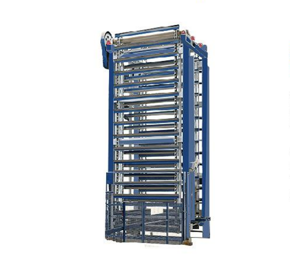 全自動托板提升裝置,采用高扭矩,高效率制動電機減速機的同步結構,堅固性鋼結構,提升用重型鏈,電機驅動,控制和監測由位置開關和光控限位開關完成。